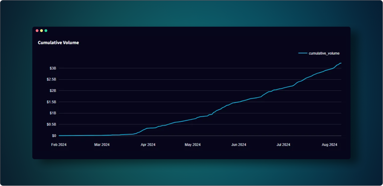 Synthetix Perps V3 is seeing growth across V3 on base, recently surpassing $3 billion in cumulative volume on the Base and generating over $1 million in fees. Throughout July, trading volumes have remained robust, with most days seeing over $20 million on Base and over $30 million on Optimism. This consistent activity highlights the strong adoption and liquidity on the platform, driven by its efficient trading features and the ongoing momentum in the decentralized finance (DeFi) sector.